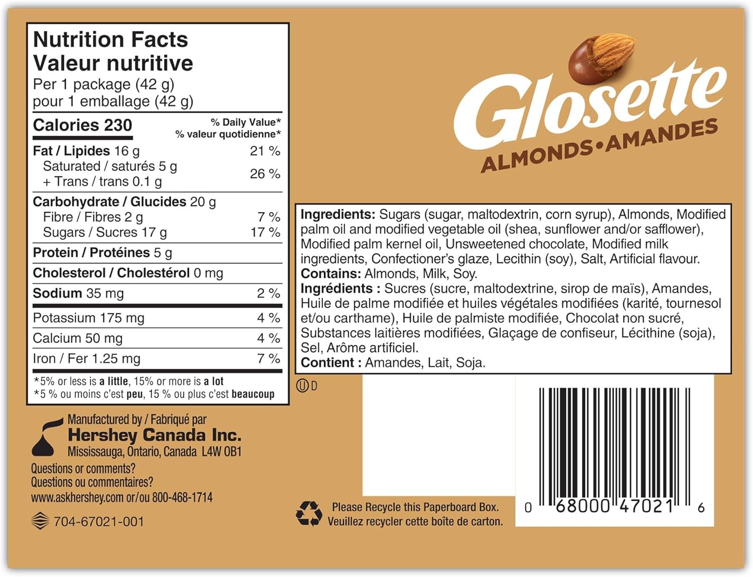 GLOSETTE Almonds, Chocolate Covered Candy (42g, Box of 18)